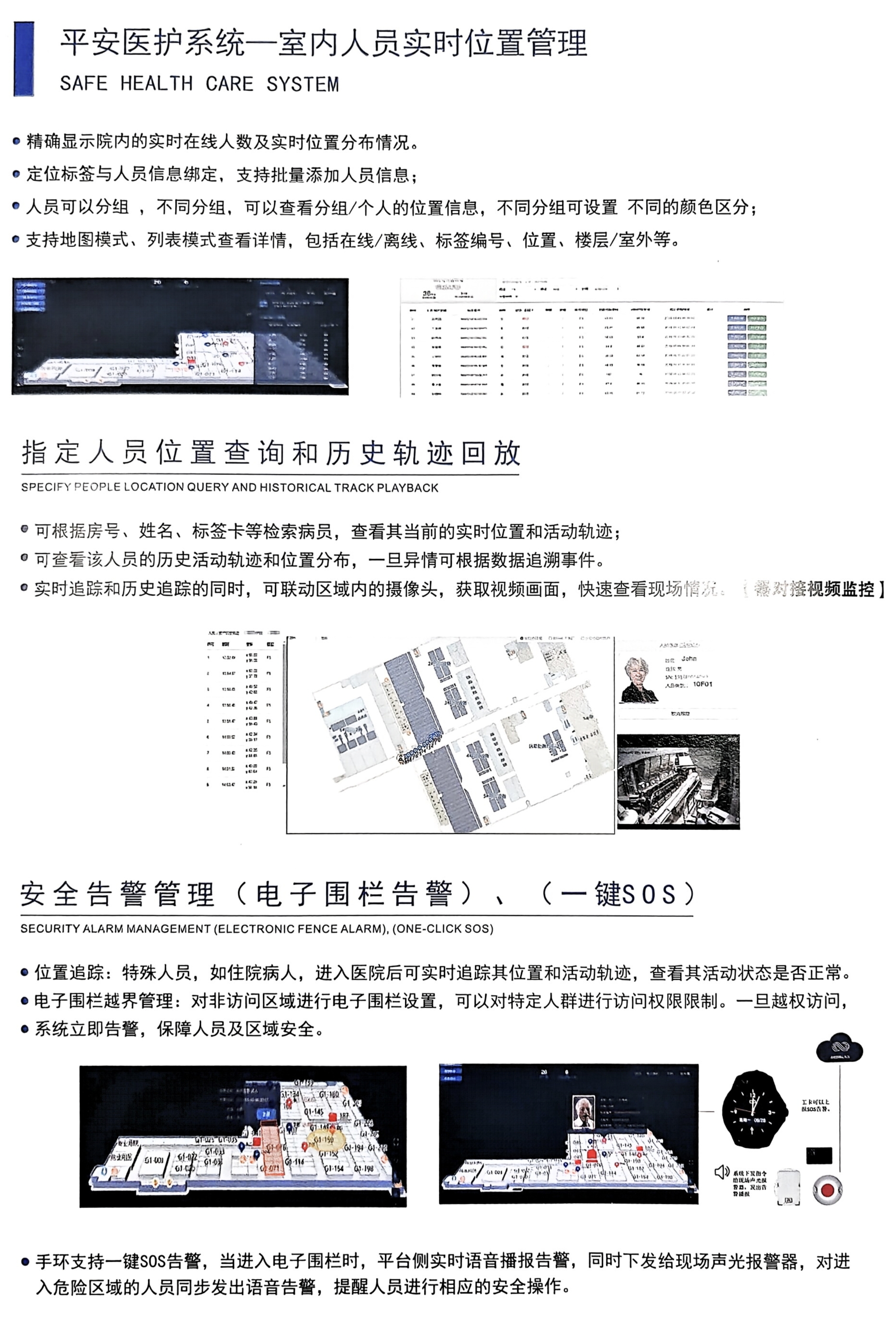 平安醫(yī)護系統根據醫(yī)護工(gōng)作(zuò)人(rén)員(yuán)工(gōng)作(zuò)場(chǎng)♣景,為(wèi)醫(yī)護人(rén)員(yuán)進行(xíng)定位,并提供SOS一(yī)鍵求助功能δ(néng)。其工(gōng)作(zuò)原理(lǐ)是(shì)在工(gōng)作(zuò)區(qū)域覆蓋定位信号,實時(shí)獲取醫(yī)護人©(rén)員(yuán)的(de)位置信息。